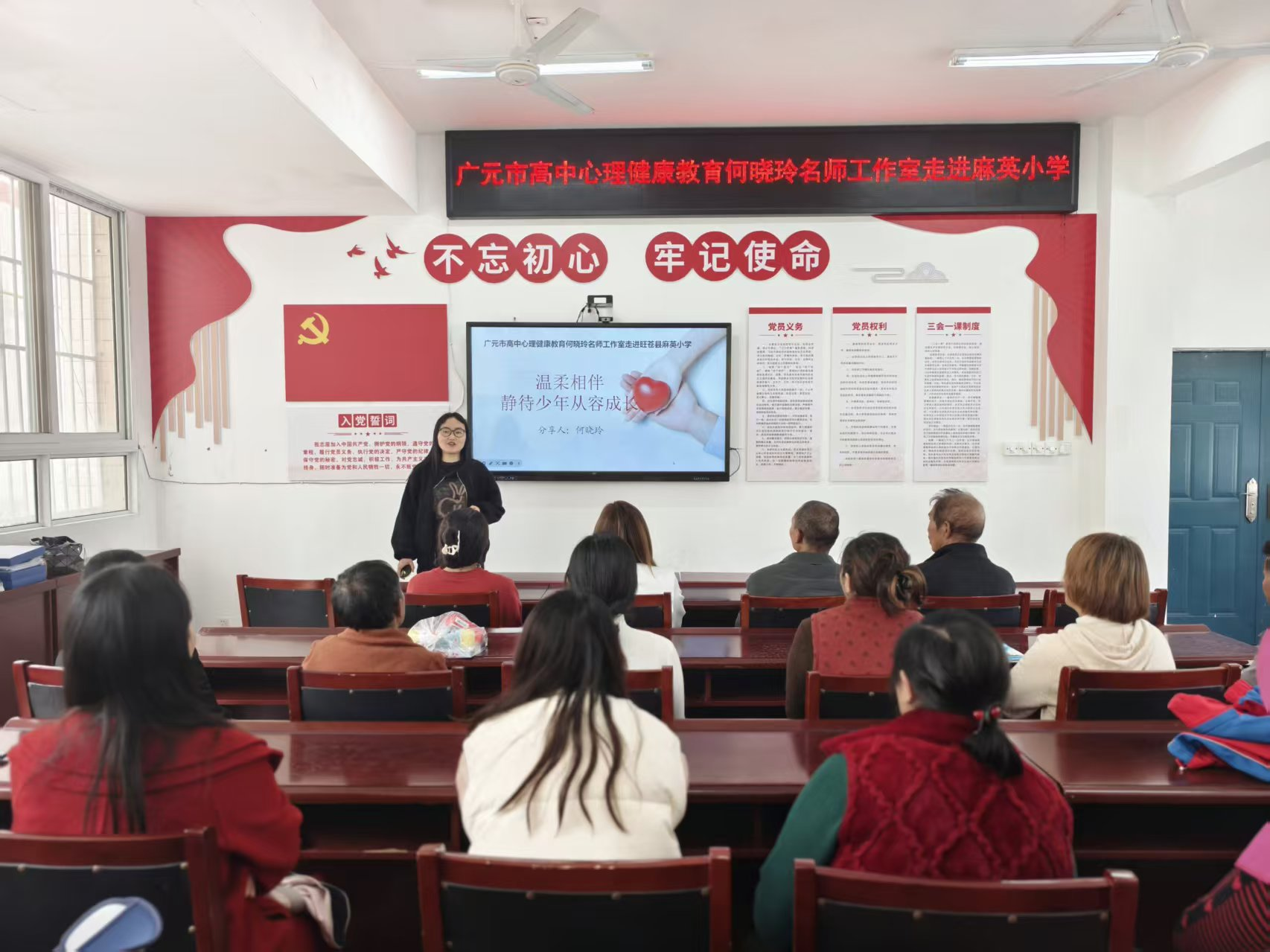 除了科技展演,活动还兼顾学生身心全面发展。科普工作人员现场发放各类科普读本150余本,涵盖天文地理、生活科普等多个领域,为孩子们送上宝贵的精神食粮;同时,特邀广元市高中心理健康教育何晓玲名师工作室走进麻英小学开展“温柔相伴,静待少年从容成长”心理健康讲座,传递心理健康知识,帮助乡村青少年建立积极心态,引导家校协同关注孩子心理成长。