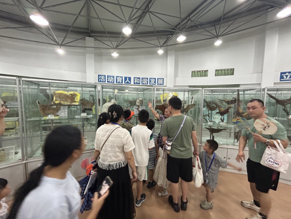 活动以“色彩的流动”开场,孩子们欣赏各类画作,亲手制作漆扇,将观察到的生物形态之美融入传统艺术创作。进入“探索科学的奥秘”阶段,他们近距离、全方位观察馆内珍藏的丰富动植物标本,不仅能直观认识各种生物的形态特征,还能深入了解其生活习性和生态环境。通过显微镜观察细胞结构时,随着调焦旋钮的转动,叶绿体的绿色脉络在视野中缓缓流动。活动最后以“心灵的科学之美”收官,一系列有趣的错觉实验引发阵阵惊叹和讨论,科普老师现场讲解其背后的科学原理,帮助大家理解感知与现实的差异,感受科学揭示真理的力量。