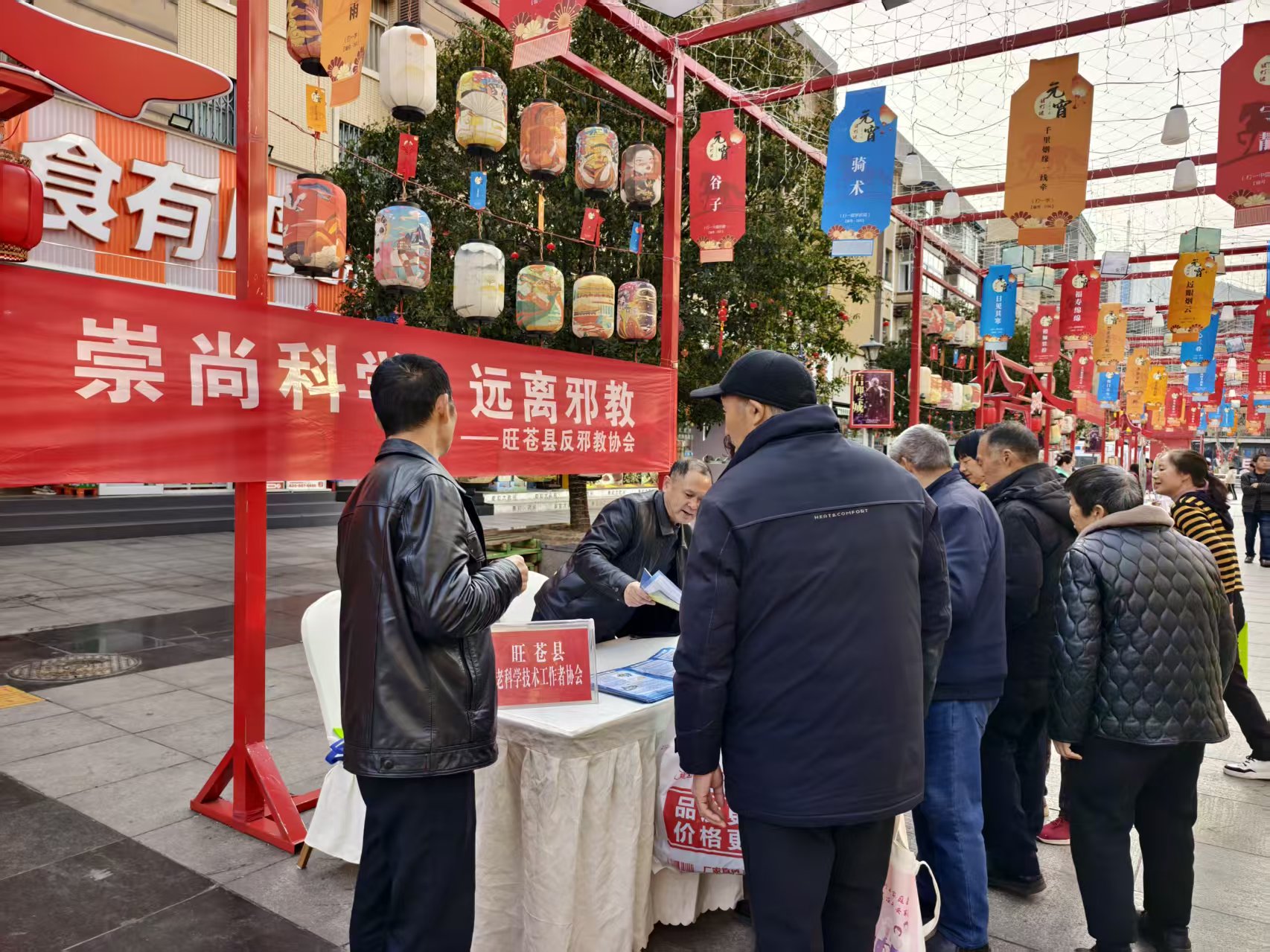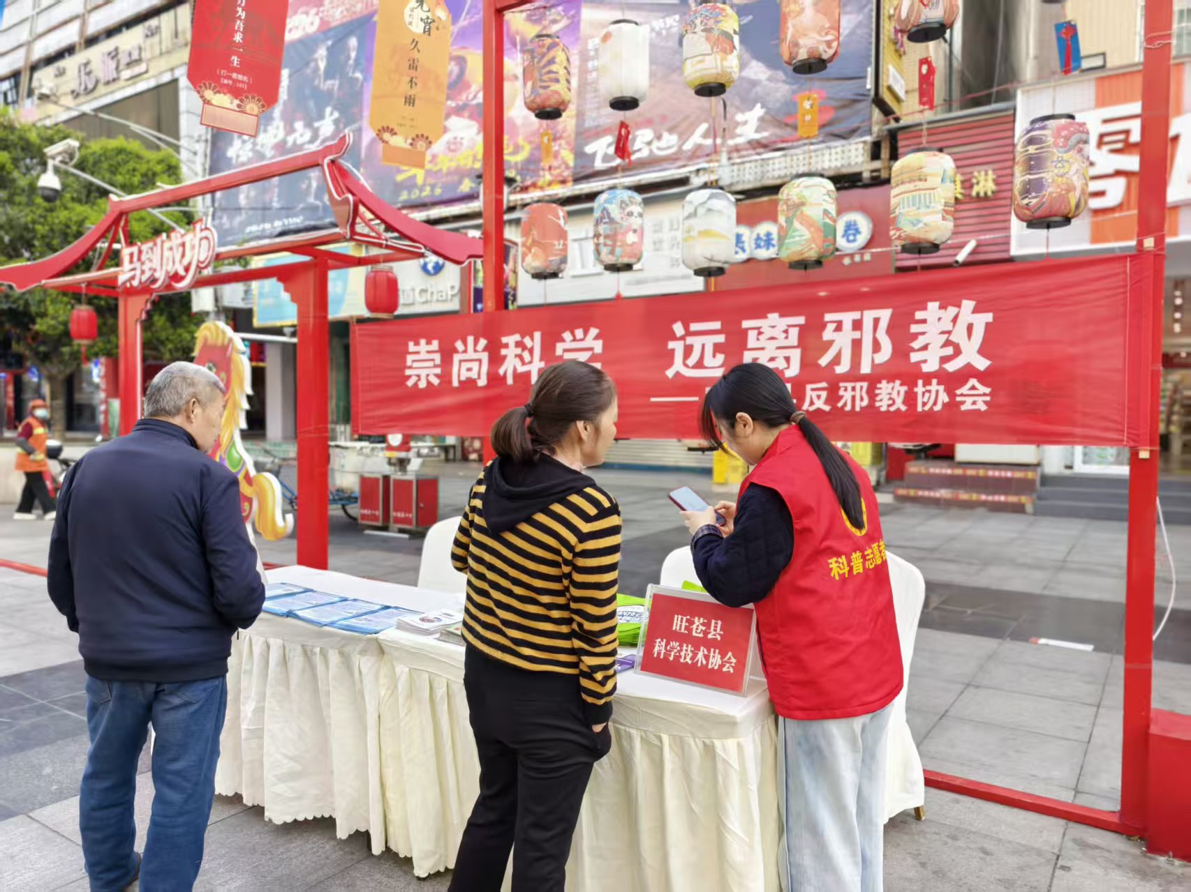 活动现场布置得井然有序,醒目的宣传横幅、内容详实的科普展板吸引了大批过往市民驻足。志愿者们身着红马甲,化身“科普宣传员”,向群众发放反邪教宣传手册、倡议书等资料,用通俗易懂的语言剖析邪教的本质、危害及常见迷惑手段,重点揭露邪教假借“治病消灾”“强身健体”“末日预言”等名义实施的违法犯罪行为。