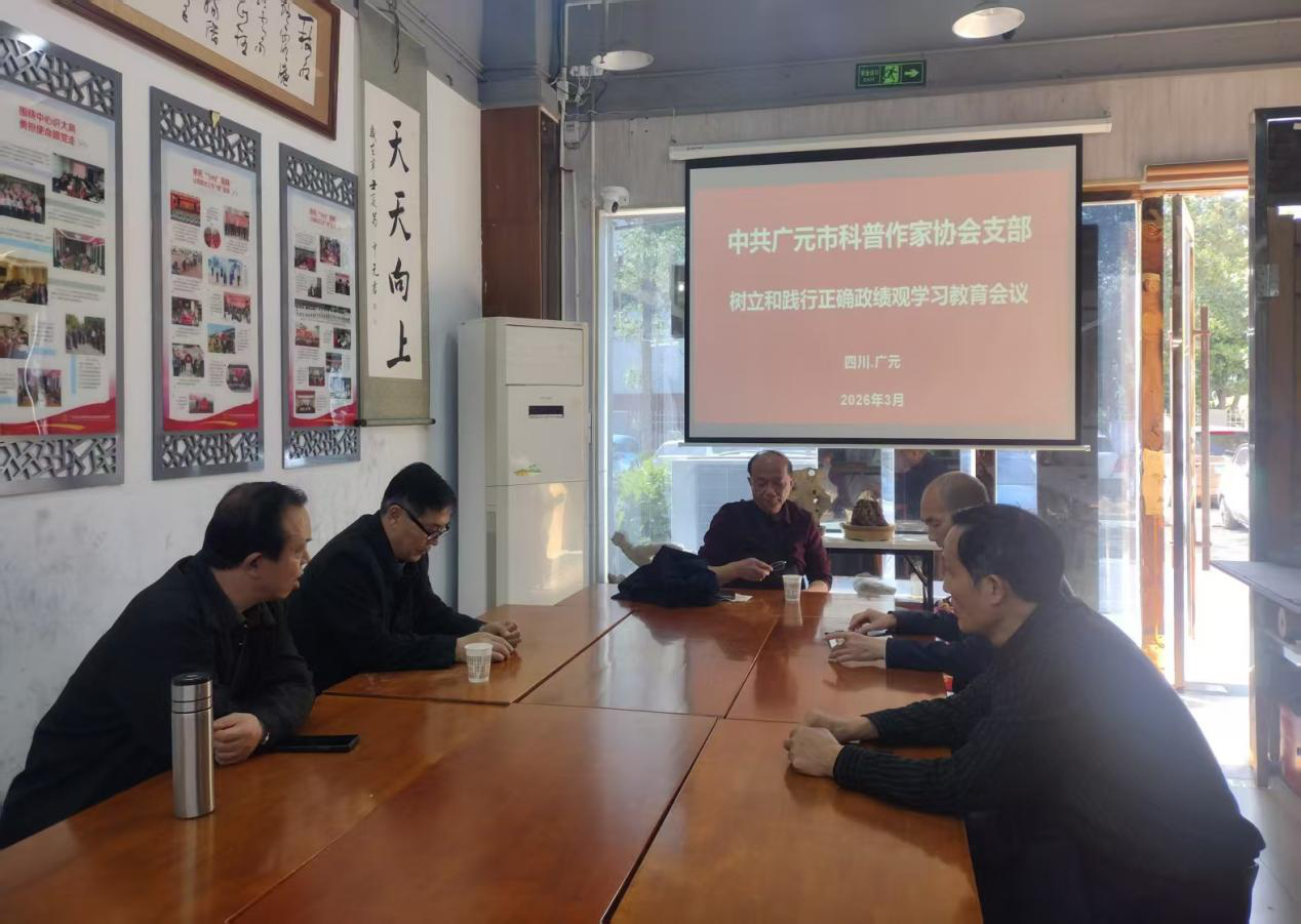 广元科普网讯(广科普作协办 文图)3月26日,广元市科普作家协会党支部开展树立和践行正确政绩观学习教育会议在利州区学而诗书画院会议室召开。市科普作协支部书记梁国江主持会议。