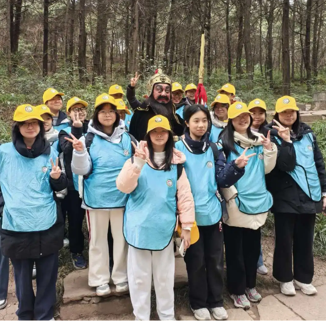 研学首日,学子们前往剑门关,开展“初识剑门关、诵读剑门关、探秘剑门关、跨越剑门关”系列主题实践。沿古蜀道徒步前行时,师生集体诵读经典篇目,在雄奇险峻的关隘之间,深切体悟“一夫当关,万夫莫开”的磅礴气势,系统探寻三国文化与蜀道军事历史的深厚底蕴,直观感受古代军事防御体系的精妙智慧,接受传统文化与历史精神的双重熏陶。
