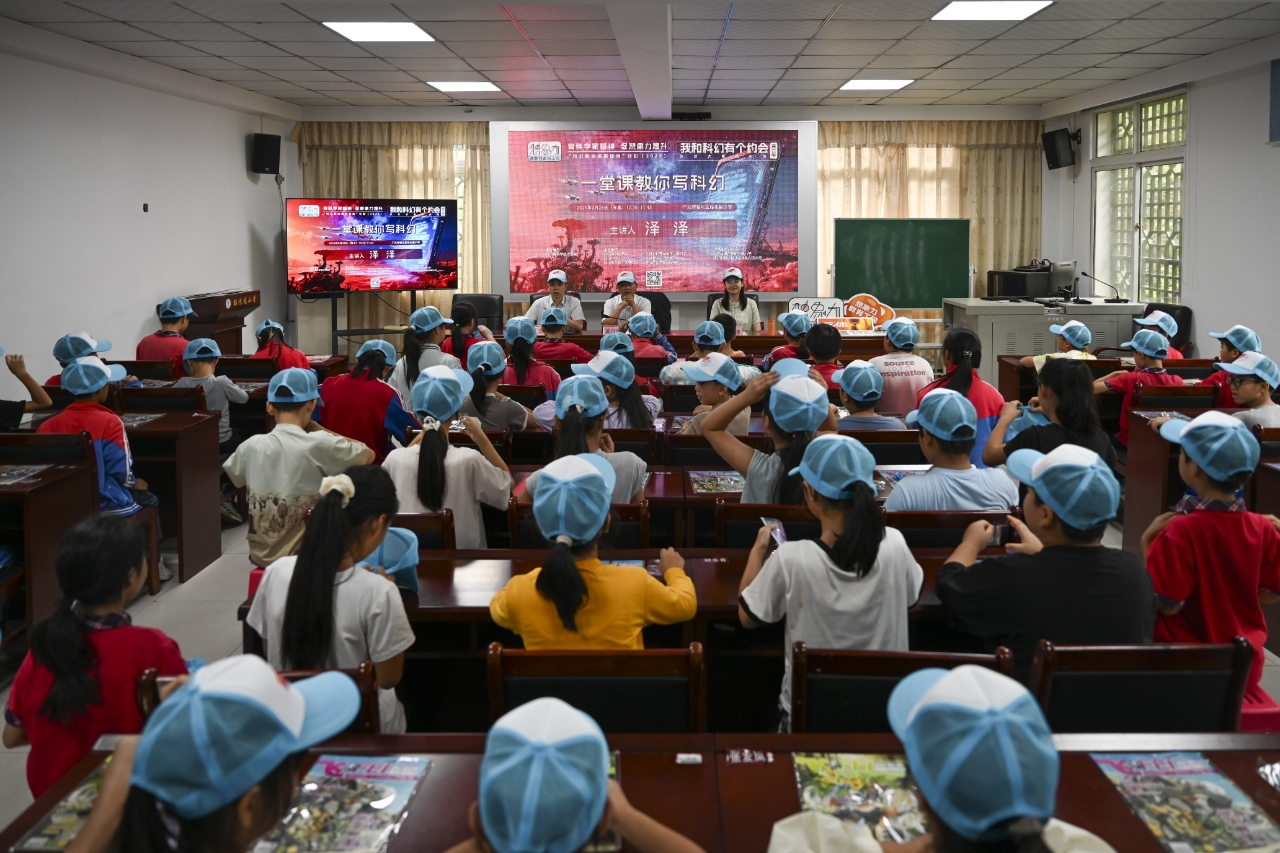 活动最后,泽泽老师向学生赠送了《科幻世界》杂志,并鼓励大家:“科学家用实验探索未知,作家用文字描绘未来,而你们,完全可以同时成为这两种人。”